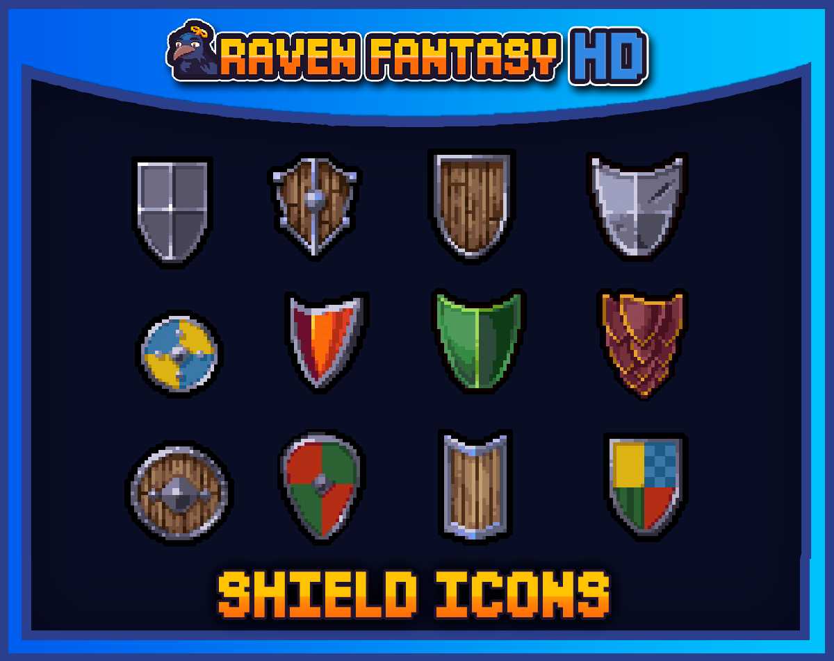 Raven Fantasy HD - RPG Icons, Pixel Art Icons, Textures and Sprites - Shields